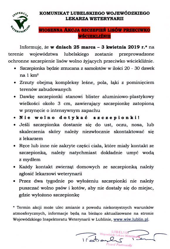 Wiosenna akcja szczepień lisów przeciwko wściekliźnie