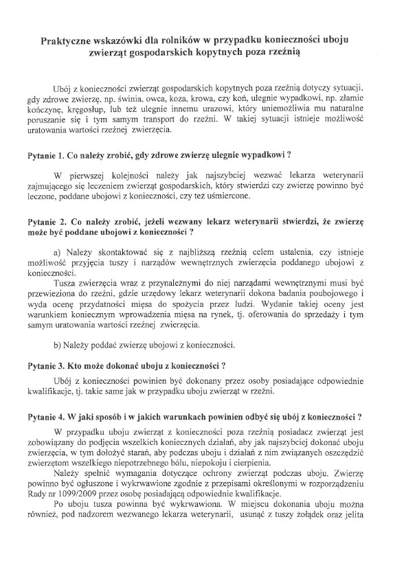 Praktyczne wskazówki dla rolników w przypadku konieczności uboju zwierząt gospodarskich kopytnych poza rzeźnią