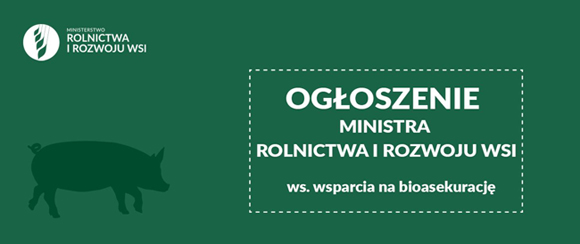 Minister Rolnictwa i Rozwoju Wsi, działając na podstawie § 13e ust. 10 rozporządzenia Rady Ministrów z dnia 27 stycznia 2015 r. w sprawie szczegółowego zakresu i sposobów realizacji niektórych zadań Agencji Restrukturyzacji i Modernizacji Rolnictwa (Dz. U. poz. 187, z późn.zm.) informuje, iż od dnia 6.08.2021 r. do dnia 27.08.2021 r. producenci rolni, którzy prowadzą gospodarstwo rolne, w którym utrzymywane są świnie – mogą składać wnioski o udzielenie pomocy o charakterze pomocy de minimis w rolnictwie na refundację 50% wydatków poniesionych w danym roku kalendarzowym na zakup mat dezynfekcyjnych, sprzętu do wykonania zabiegów dezynfekcyjnych, dezynsekcyjnych lub deratyzacyjnych oraz produktów biobójczych, środków dezynsekcyjnych lub deratyzacyjnych, odzieży ochronnej i obuwia ochronnego oraz wydatków poniesionych na zabezpieczenie budynków, w których utrzymywane są świnie przed dostępem zwierząt domowych.